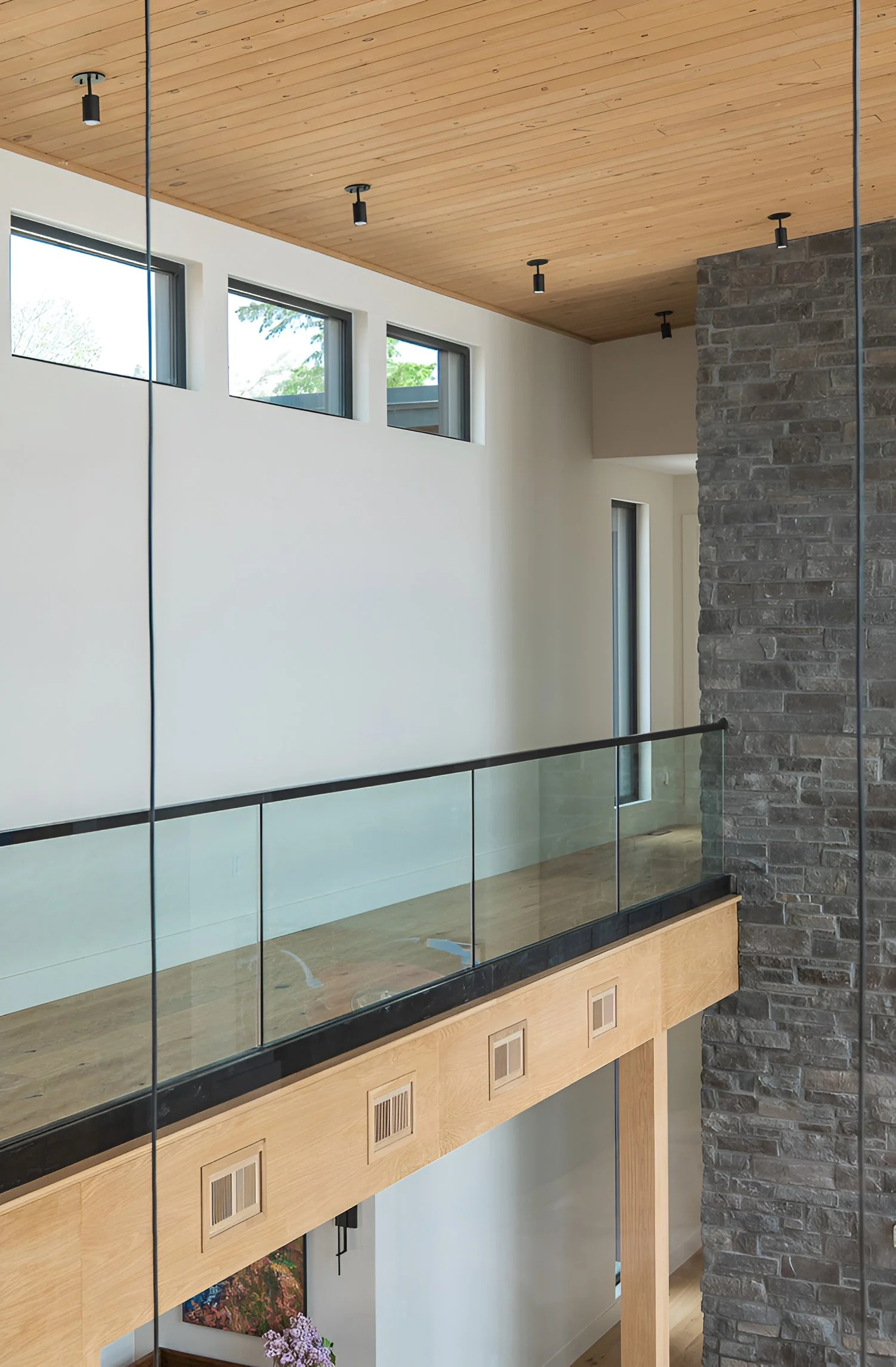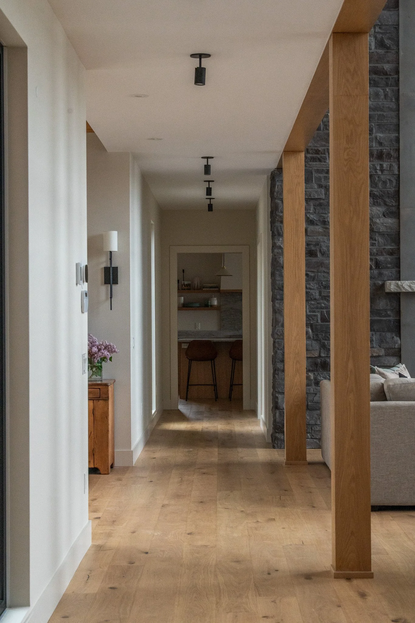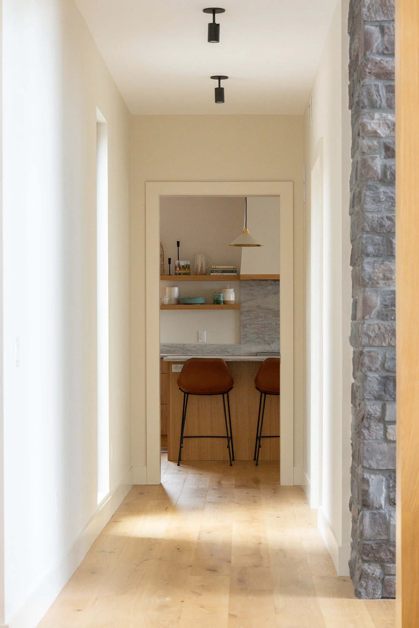 Indoor views are just as important. A view down both these hallways create a calm and welcoming sightline towards the media room. In fact, these are two of our favourite hall views to date!