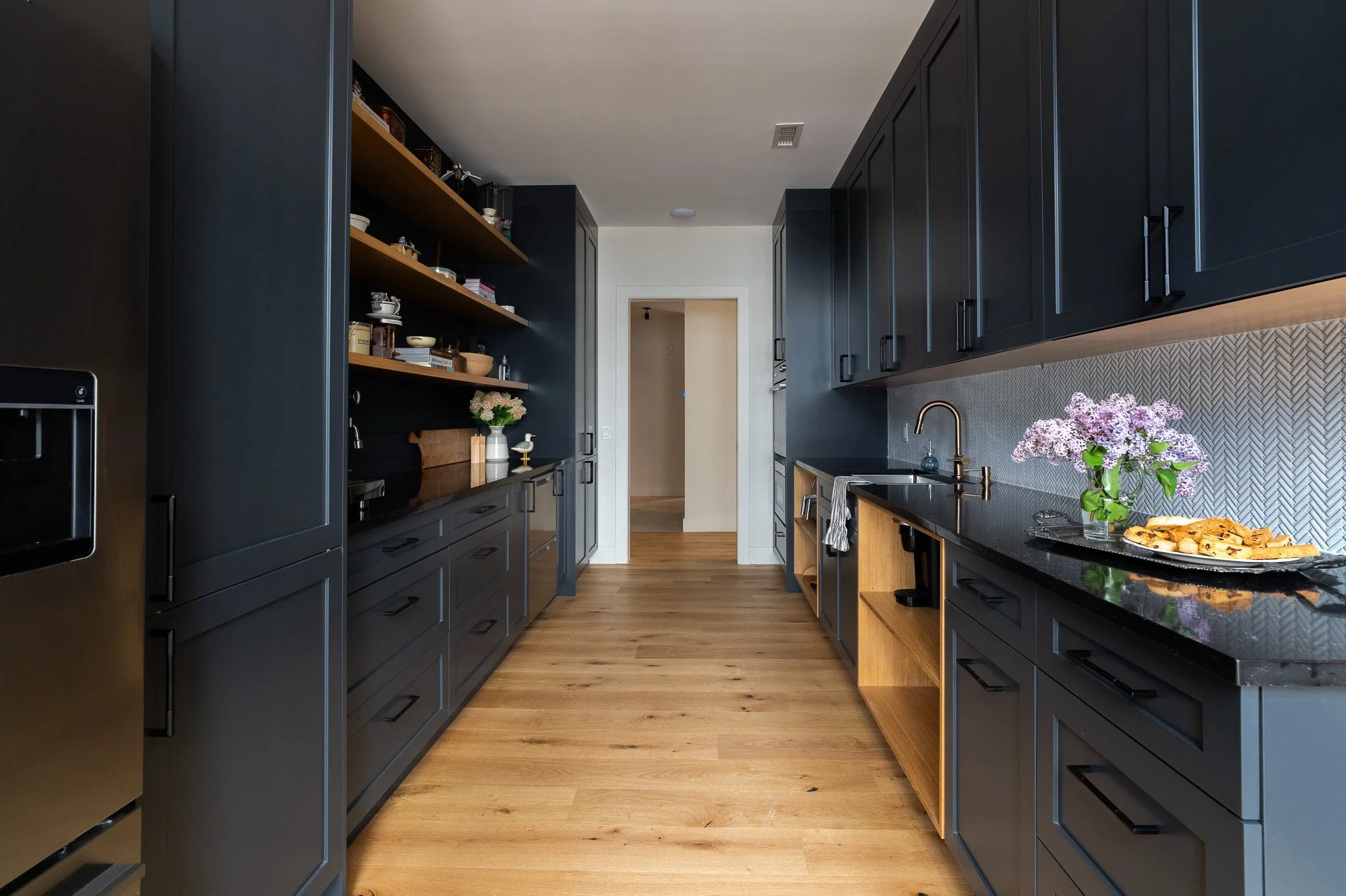 The same colourway is also used in the butler pantry to create a cozy yet sophisticated second kitchen with full-service amenities