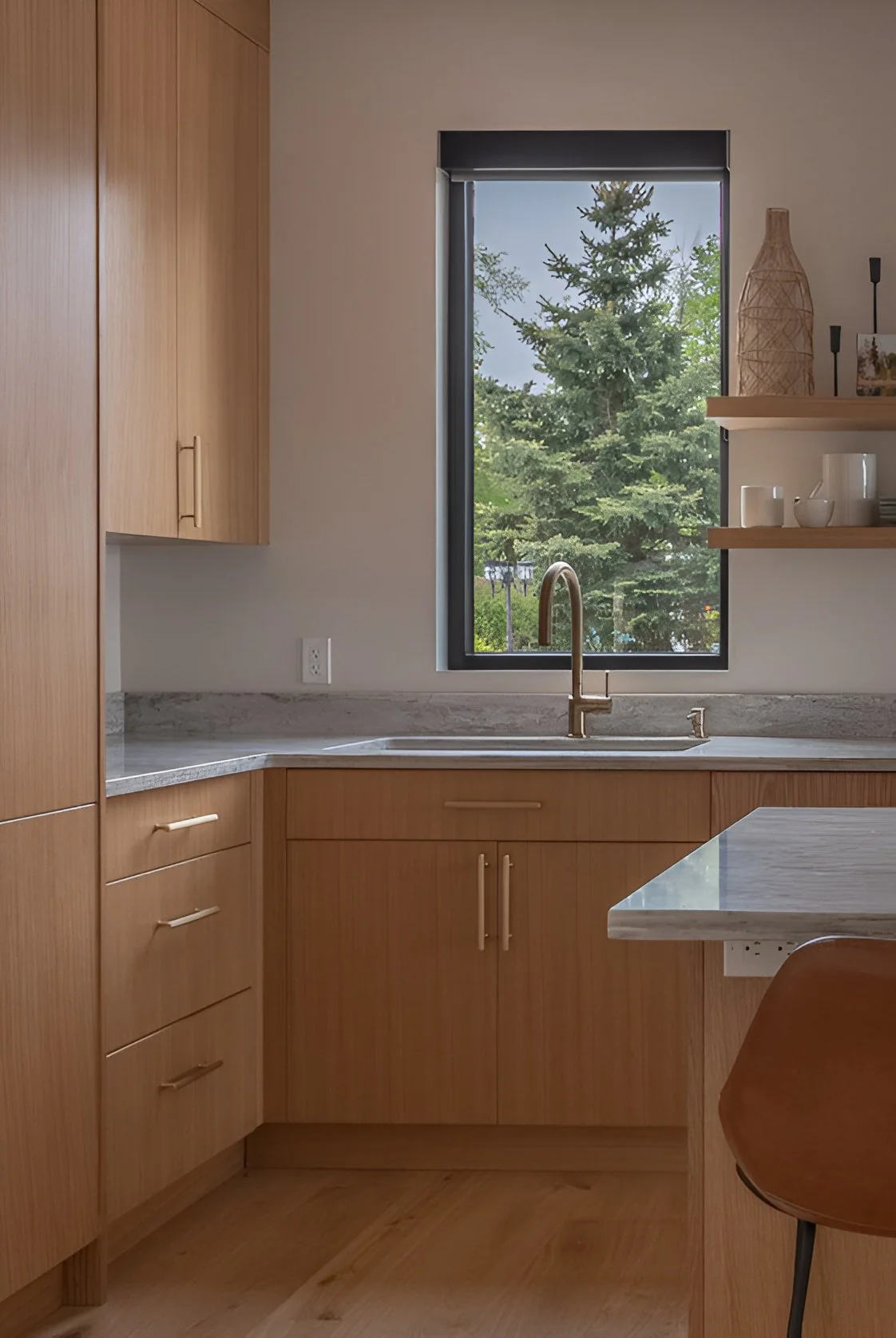 A view to nature outside the kitchen window at our Balsam Lake build.