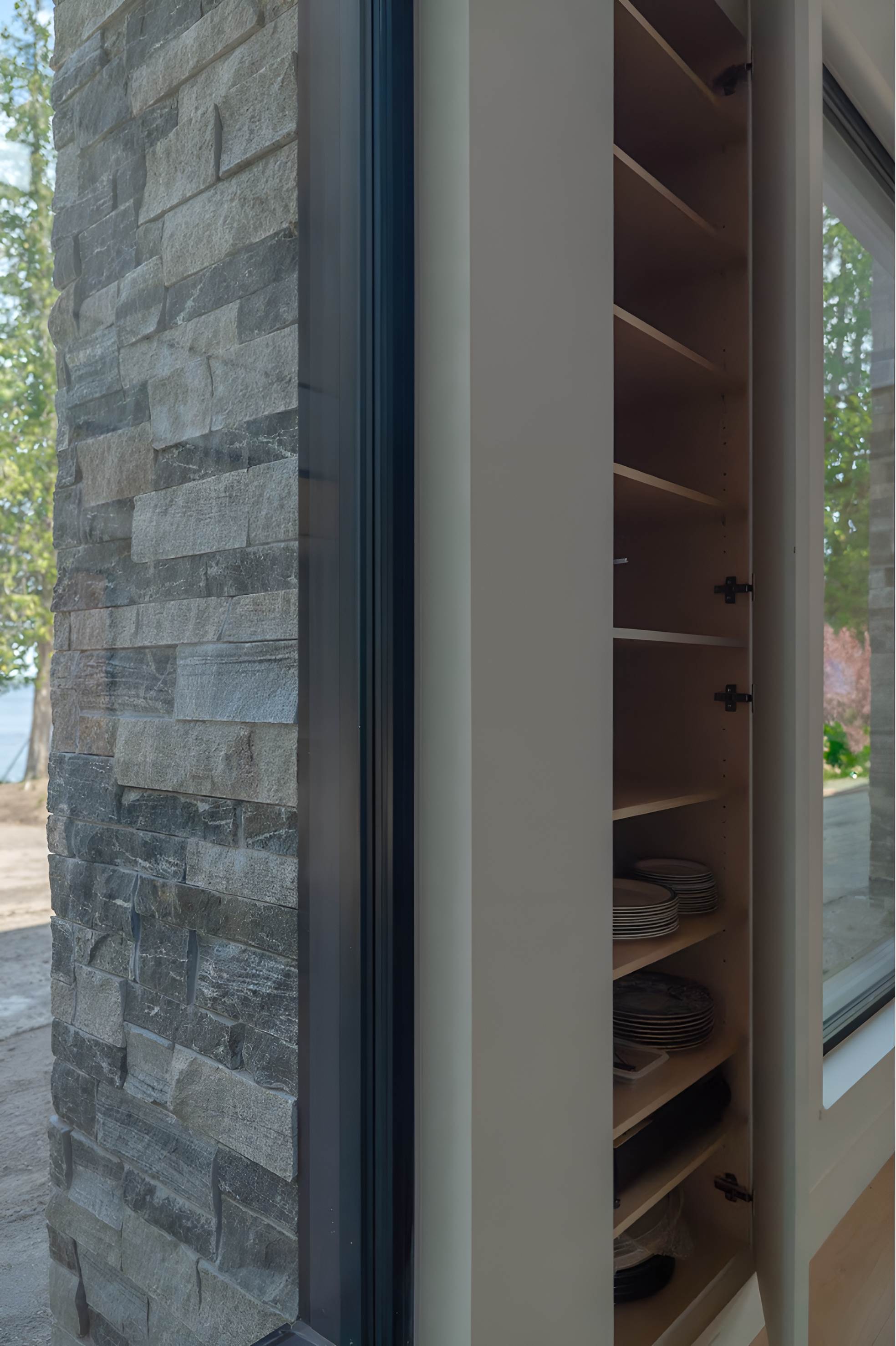This view at the front door of our Balsam Lake project greets visitors with a reflection back out to the cedars that surround the property and grace the shoreline.